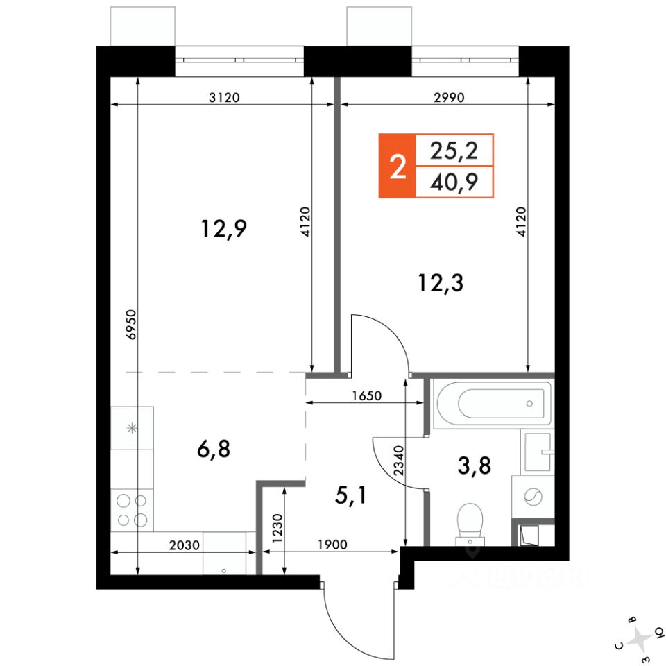 Продаётся 2-к квартира номер 185 общей площадью 40.9 кв.м. на 17-м этаже 24 этажного здания. Отделка Whitebox. Цена с учётом скидки.