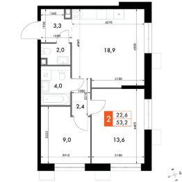 Продаётся 3-к квартира номер 261 общей площадью 53.2 кв.м. на 23-м этаже 24 этажного здания. Отделка Whitebox. Цена с учётом скидки.