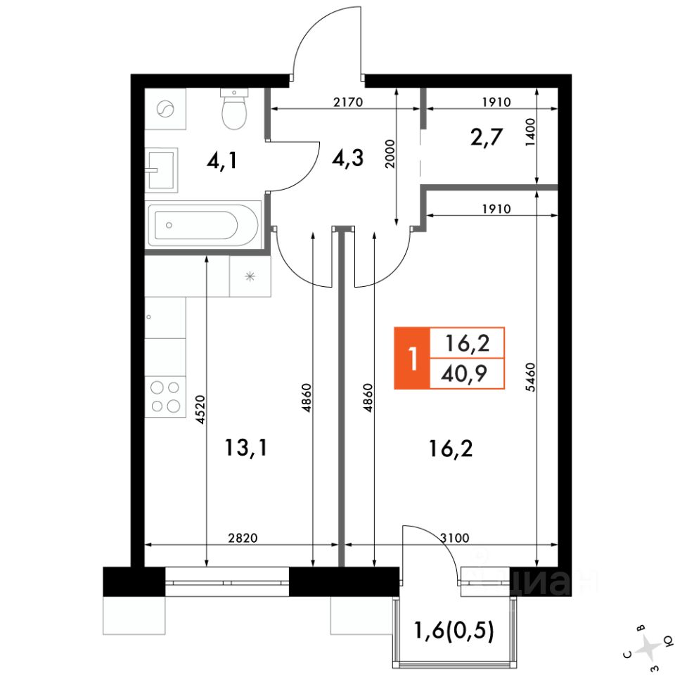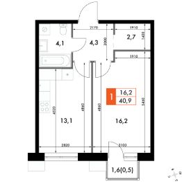 Продаётся 1-к квартира номер 35 общей площадью 40.9 кв.м. на 4-м этаже 24 этажного здания. Отделка Whitebox. Цена с учётом скидки.