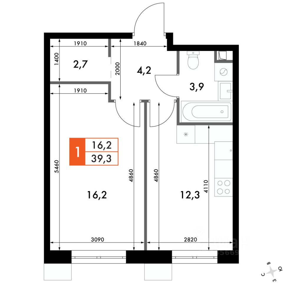 Продаётся 1-к квартира номер 46 общей площадью 39.3 кв.м. на 5-м этаже 24 этажного здания. Отделка Whitebox. Цена с учётом скидки.