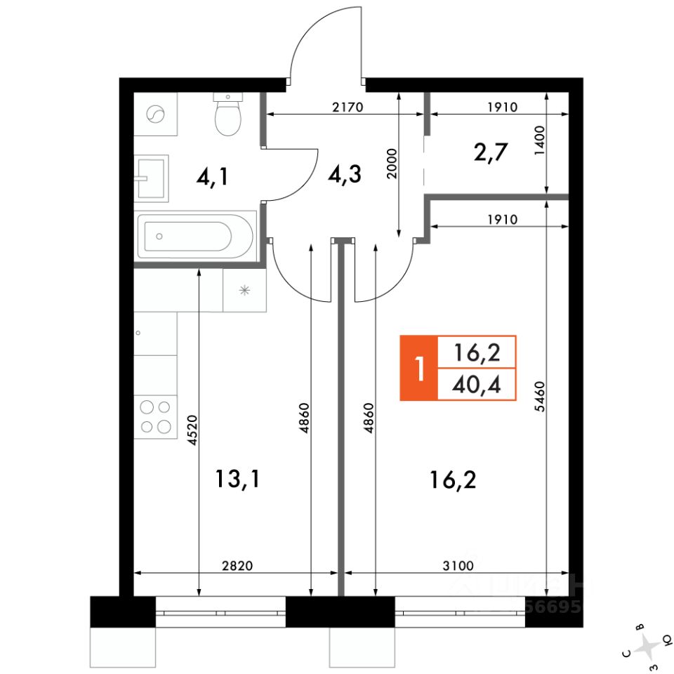 Продаётся 1-к квартира номер 167 общей площадью 40.4 кв.м. на 15-м этаже 24 этажного здания. Отделка Whitebox. Цена с учётом скидки.