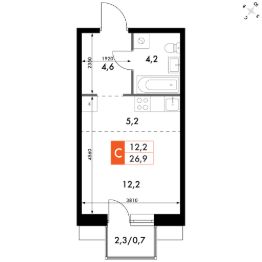 Продаётся квартира-студия номер 179 общей площадью 26.9 кв.м. на 16-м этаже 30 этажного здания. Отделка Whitebox. Цена с учётом скидки.