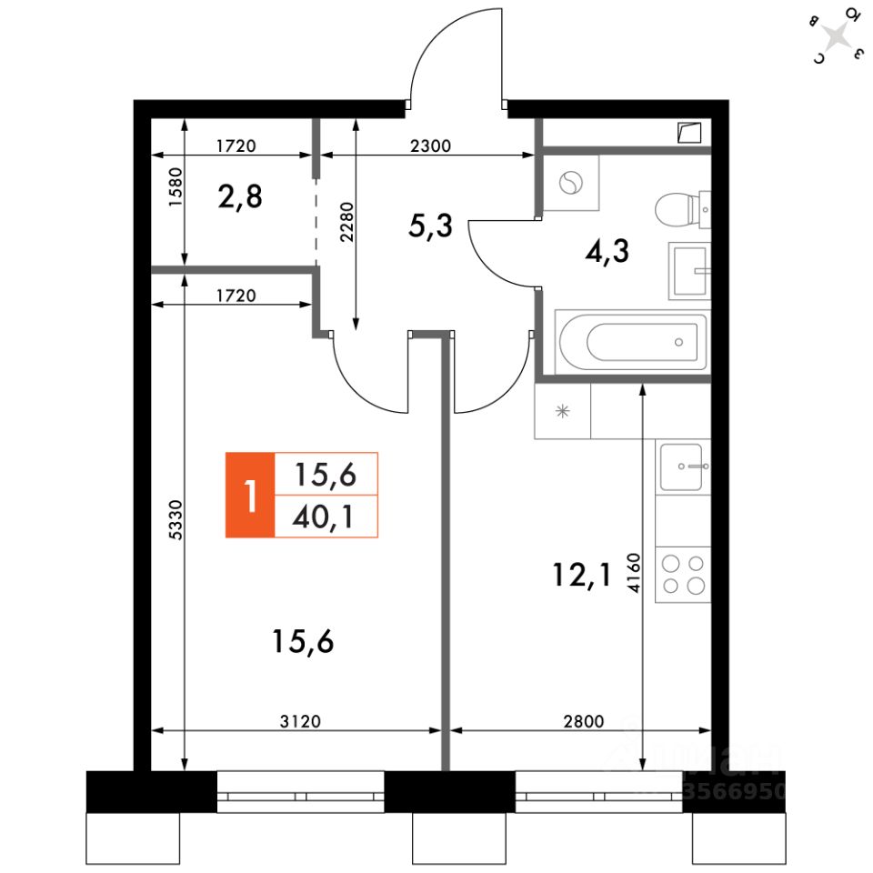 Продаётся 1-к квартира номер 285 общей площадью 40.1 кв.м. на 25-м этаже 30 этажного здания. Отделка Whitebox. Цена с учётом скидки.