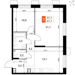 Продаётся 2-к квартира номер 305 общей площадью 61.1 кв.м. на 27-м этаже 30 этажного здания. Отделка Whitebox. Цена с учётом скидки.