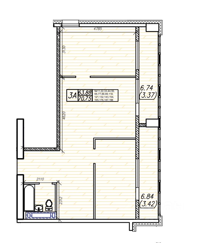 Общая площадь70,75 м²