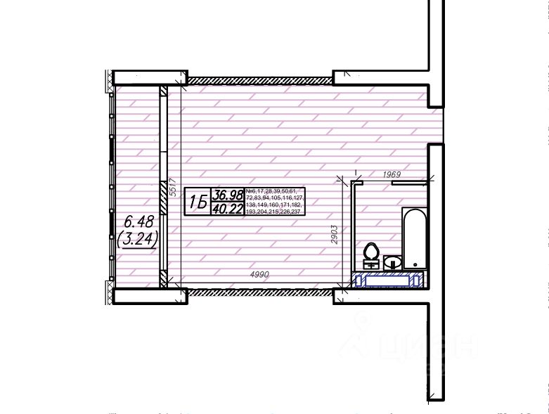 Общая площадь40,22 м²