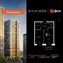 Продаётся 1-к квартира номер 322 общей площадью 41.6 кв.м. на 28-м этаже 30 этажного здания. Предчистовая отделка. Цена с учётом скидки.