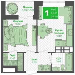 Общая площадь35,17 м²