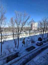Общая площадь 53,5 м², из которых 24 м² — жилая площадь, просторная кухня 12 м². Высота потолков — 2,5 м. В квартире сделан евроремонт, комнаты изолированы, и их окна выходят на улицу и во двор. Балкон застеклен и отделан, два раздельных санузла, что обеспечивает комфорт и приватность всем членам семьи. Квартира расположена в середине дома, очень тёплая, даже в холодное время балкон открыт, что обеспечивает хорошую вентиляцию и поступление свежего воздуха.