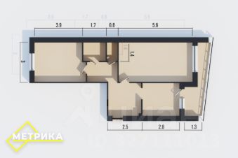 Продаётся 2-комнатная квартира общей площадью 52,4 кв.м на 5 этаже пятиэтажного дома.