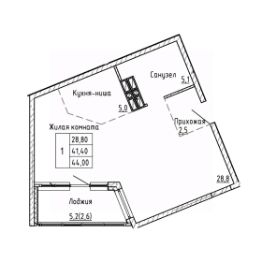Продаётся 1-комнатная квартира в строящемся доме (Корпус 1), срок сдачи: II-кв. 2026, общей площадью 44 кв.м., на 21 этаже.
