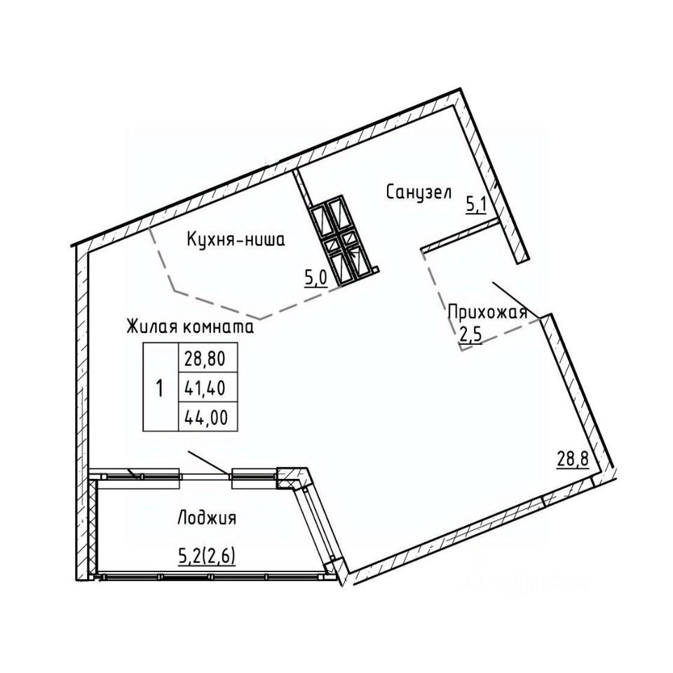 Общая площадь44 м²