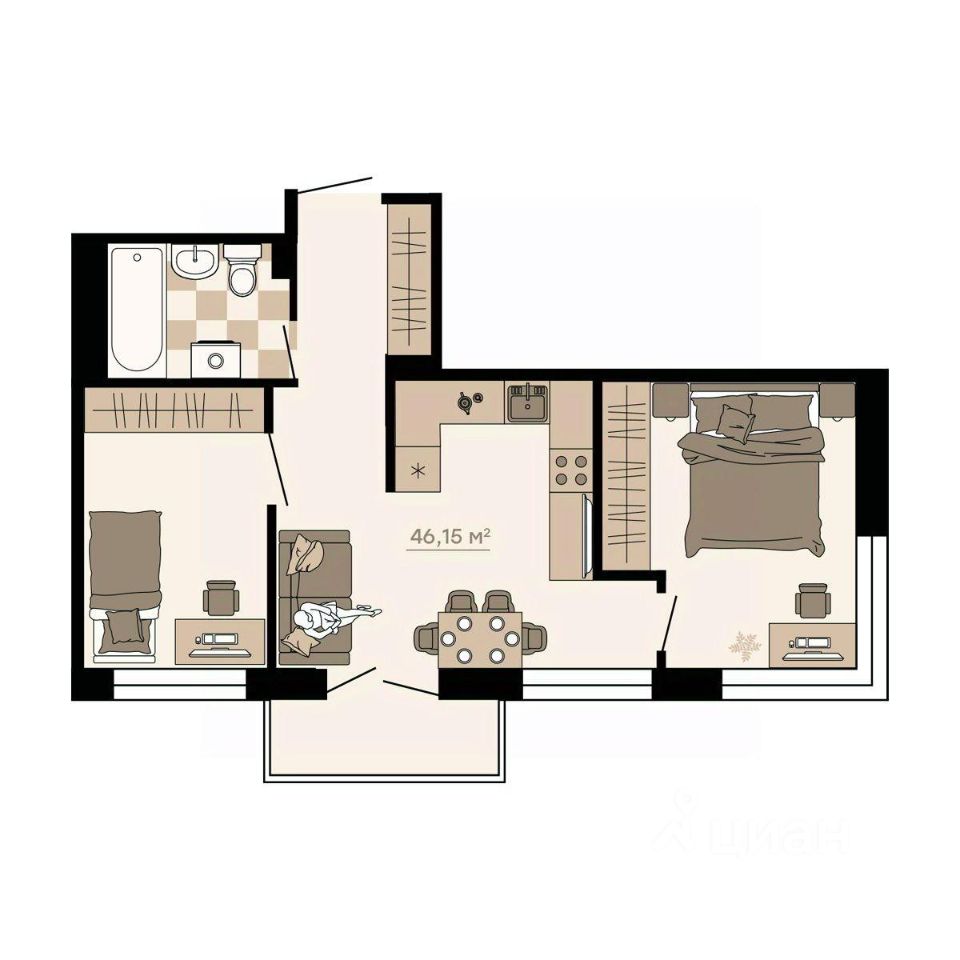 Квартира с балконом свободной планировки