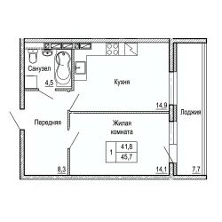 Общая площадь45,7 м²