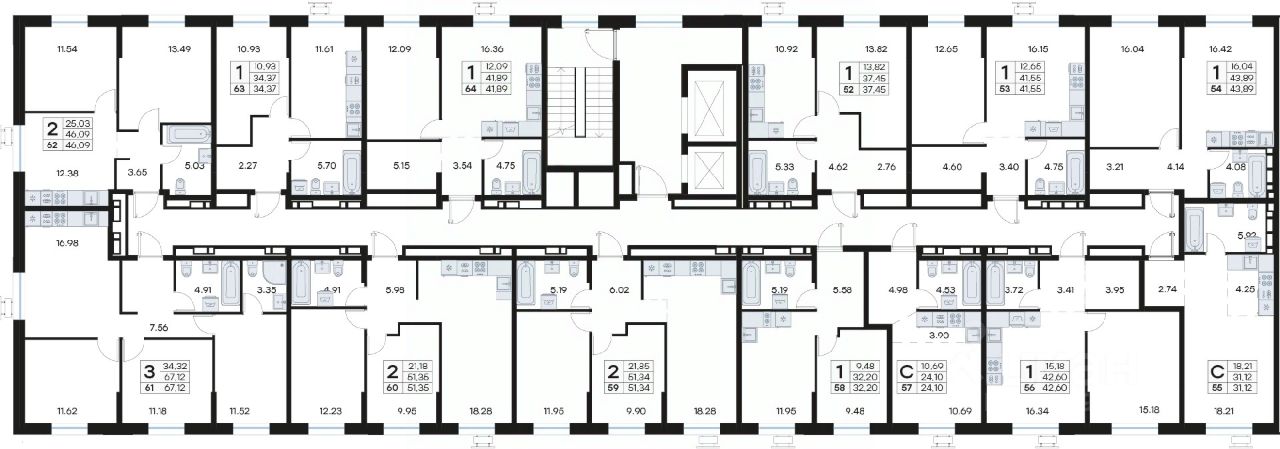 • Планировочные решения под любой жизненный сценарий от 23 до 67 м²