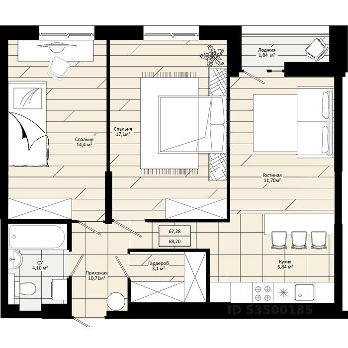 68,2 м²