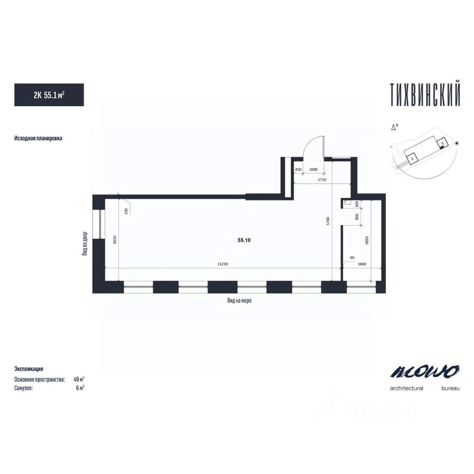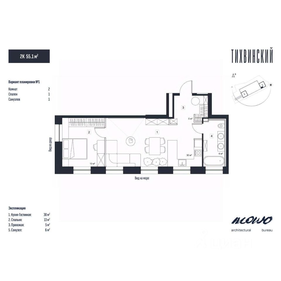 Общая площадь55,1 м²