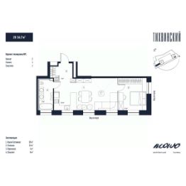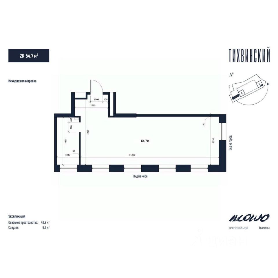 Общая площадь54,7 м²