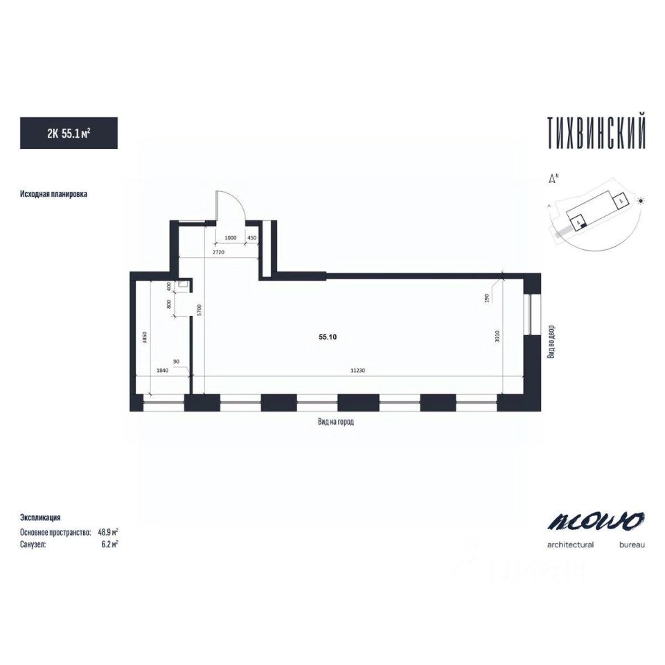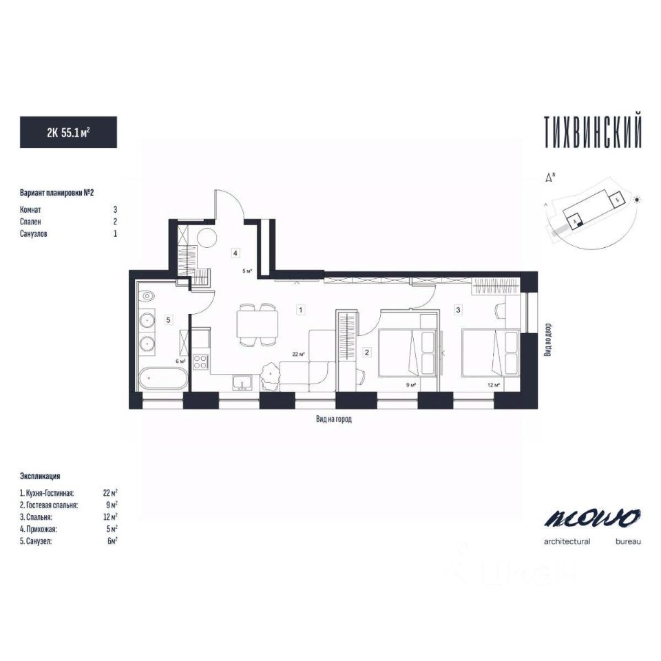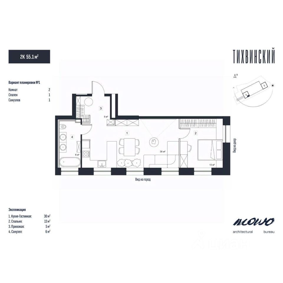 Общая площадь55,1 м²