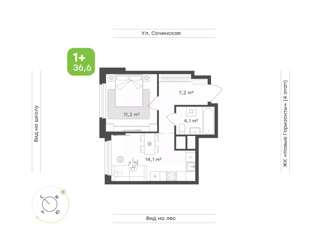Уютная квартира, где каждая деталь продумана для комфорта и удобства Кухня-гостиная — сердце квартиры, наполненное светом и воздухом. Здесь удобно готовить, встречать гостей и проводить уютные вечера за настольными играми или просмотром фильмов В уединённой спальне царит атмосфера покоя и отдыха Функциональная прихожая с местом под систему хранения избавит от беспорядка, обеспечивая комфорт с первых секунд Современный санузел позволяет разместить всё необходимое для домашних нужд и расслабляющей вечерней ванны