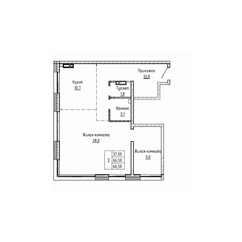 Общая площадь66,5 м²