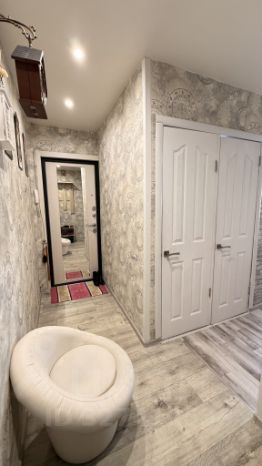 В квартире произведен качественный ремонт, установлены пластиковые окна, на полу ламинат, новые обои.