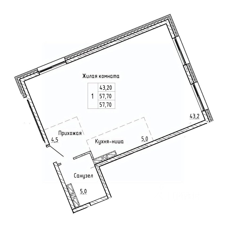 Продаётся 2-комнатная квартира в строящемся доме (Корпус 1), срок сдачи: II-кв. 2026, общей площадью 57.7 кв.м., на 18 этаже.