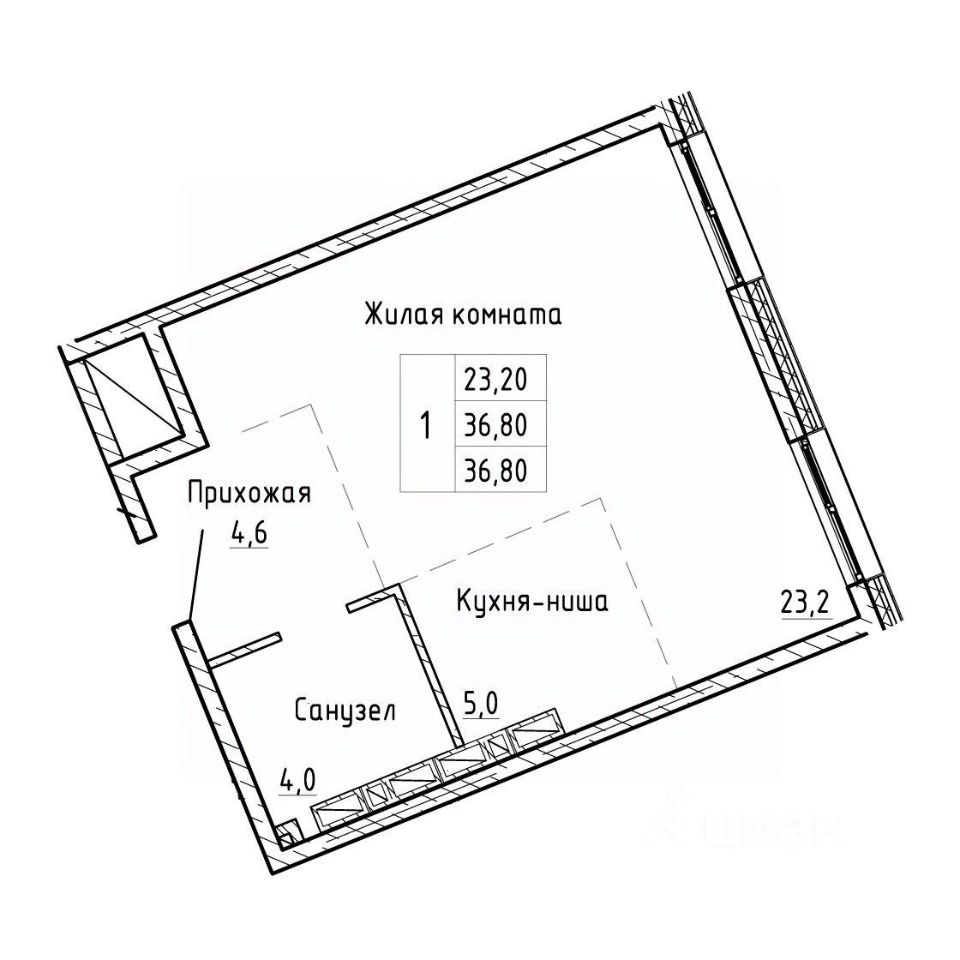 Общая площадь36,8 м²