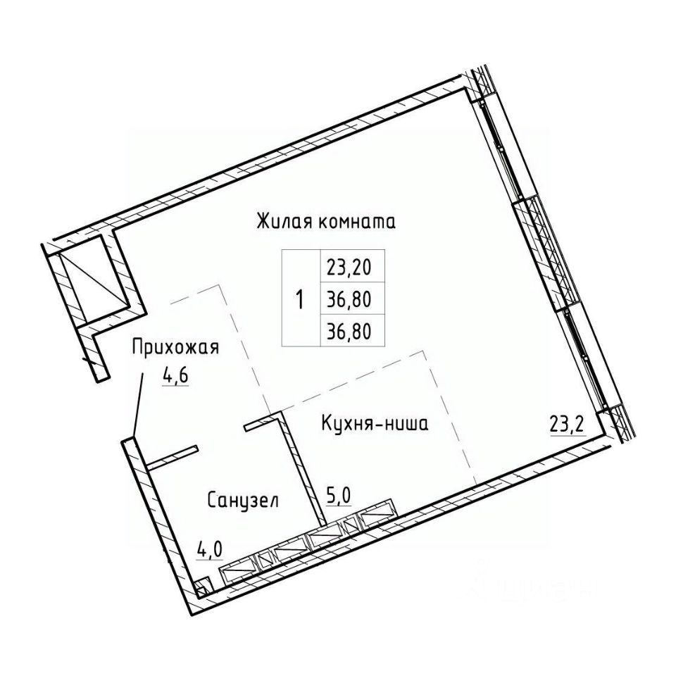 Общая площадь36,8 м²