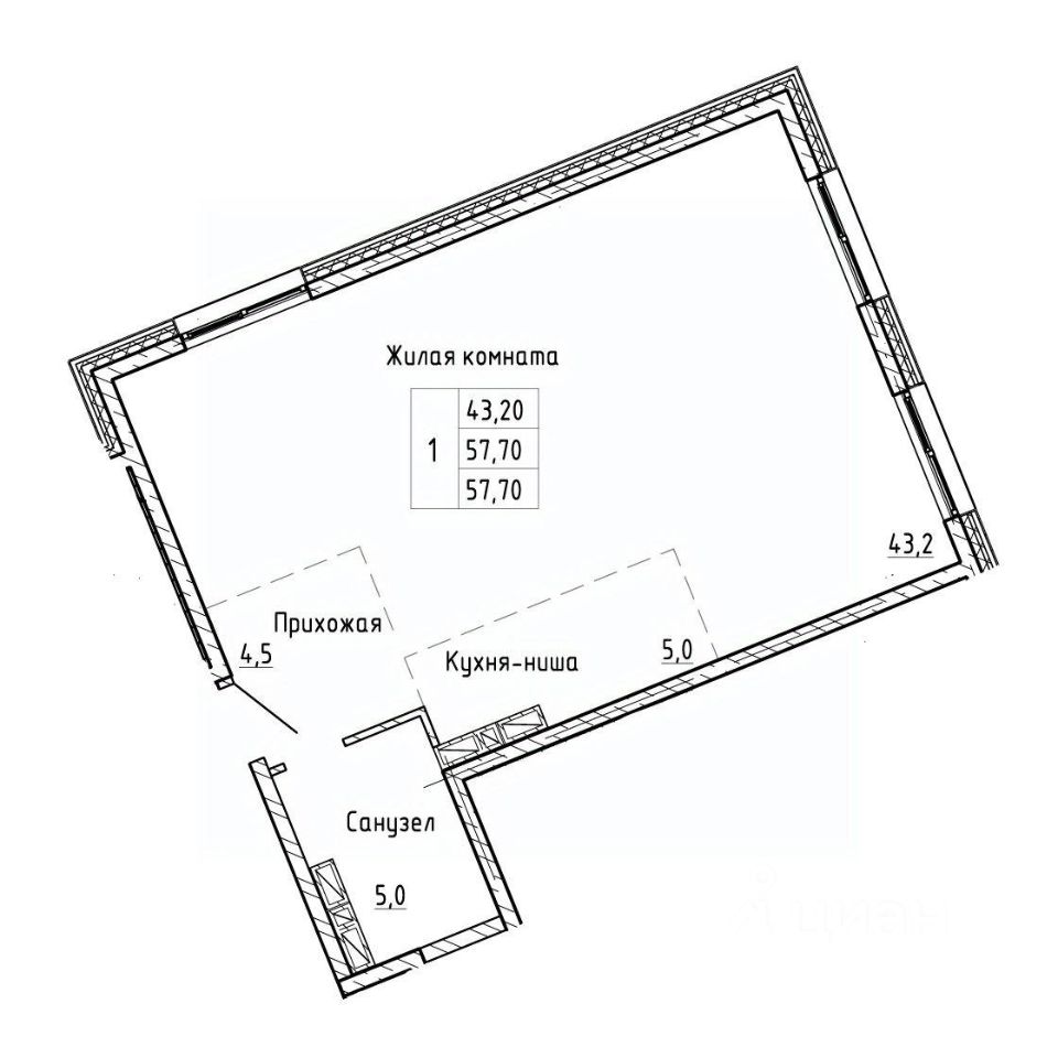 Общая площадь57,7 м²