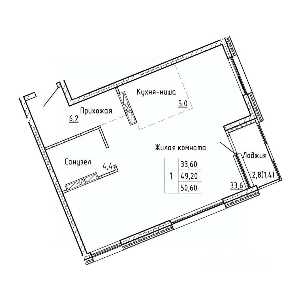 50,6 м²