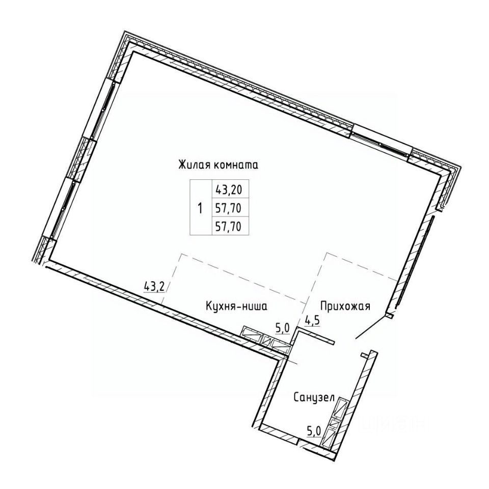57,7 м²