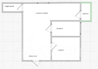 По документам квартира однокомнатная, однако фактически комнаты 2 - в бывшей кухне законсервирована "мокрая зона", кухонный гарнитур вынесен в гостиную, а на ее месте организована спальня.