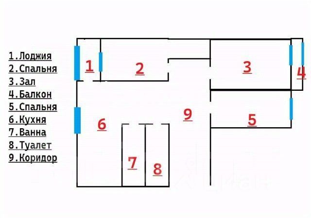 1 лоджия, 1 балкон