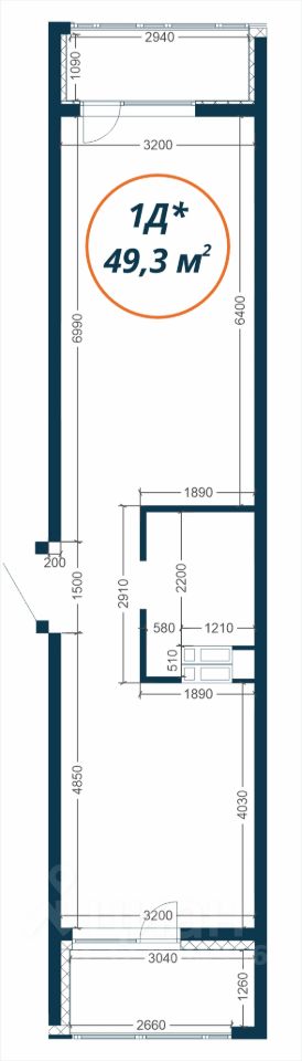 Общая площадь49,3 м²