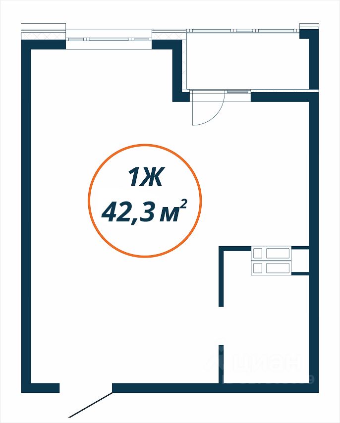 Общая площадь42,3 м²