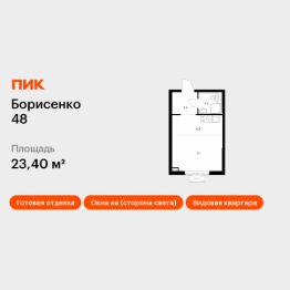 Продаётся квартира-студия площадью 23,4 кв.м на 26 этаже 30 этажного дома (Корпус 4, Секция 4) проекта ПИК Борисенко 48. Светлый просторный подъезд на уровне земли, функциональная планировка, большие окна, c отделкой.