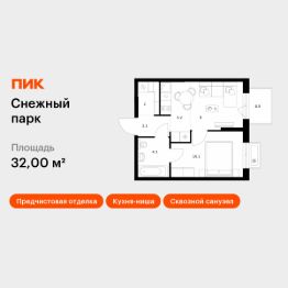 Продаётся 1-комн. квартира площадью 32 кв.м на 11 этаже 25 этажного дома (Корпус 3, Секция 1) проекта ПИК Снежный парк. Светлый просторный подъезд на уровне земли, функциональная планировка, большие окна, предчистовая отделка.