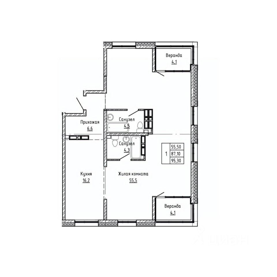 Общая площадь95,3 м²