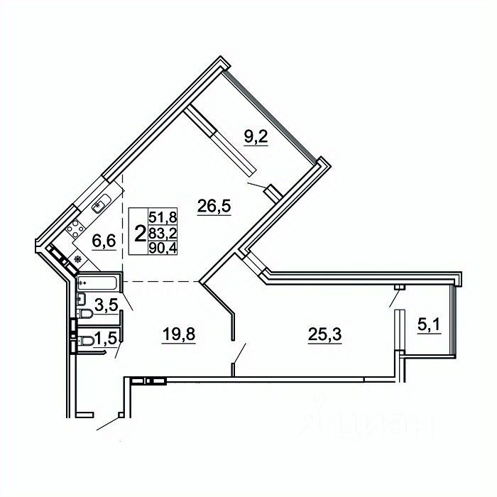 Общая площадь90,4 м²