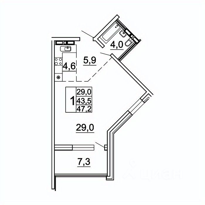 Продается 1-комн. квартира, 47,2 м²