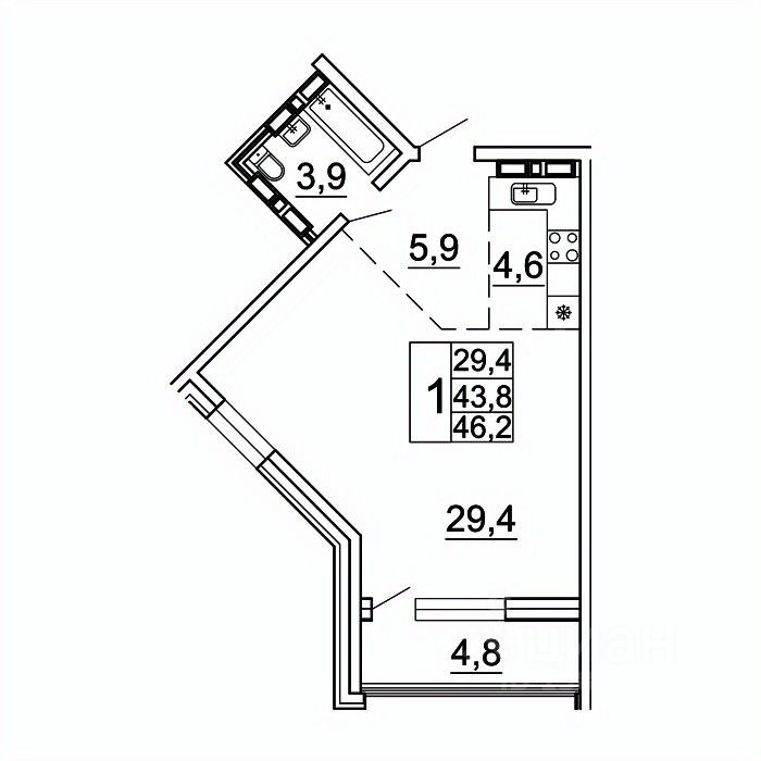 Общая площадь46,2 м²
