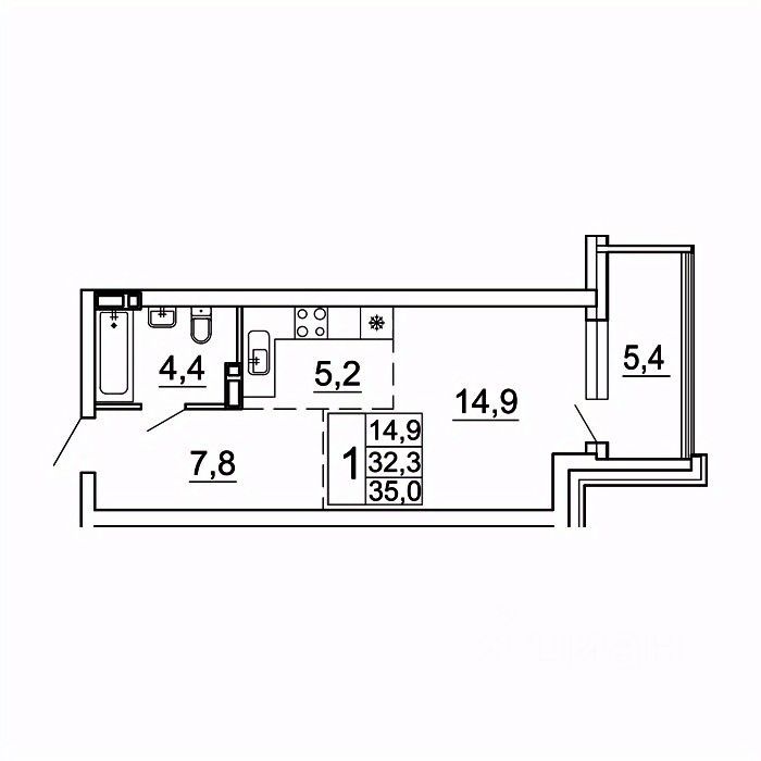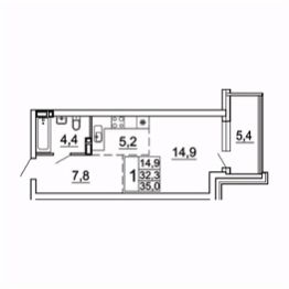 Общая площадь35 м²