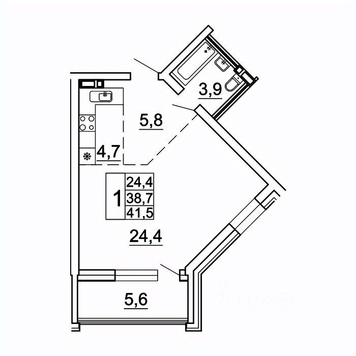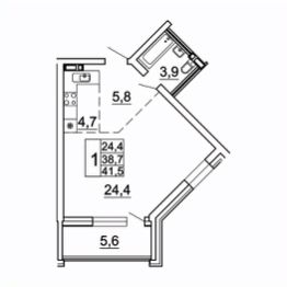 Общая площадь41,6 м²