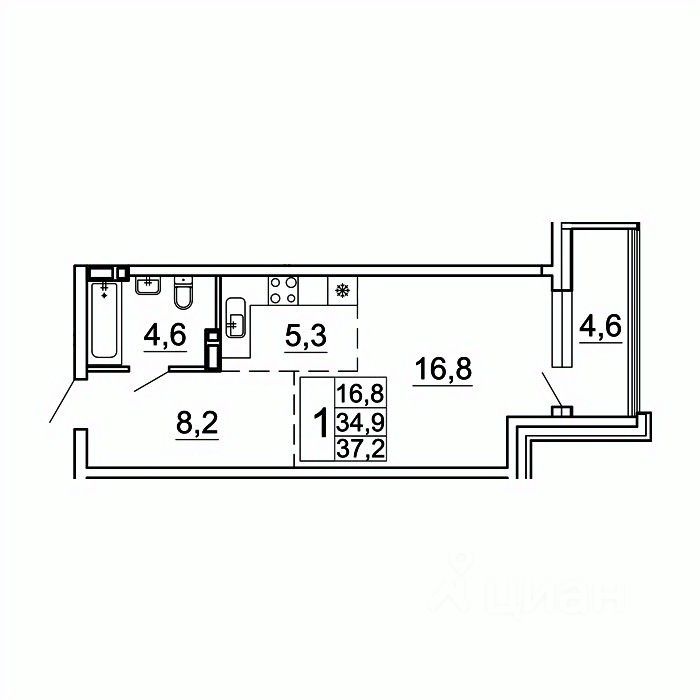 Общая площадь37,2 м²