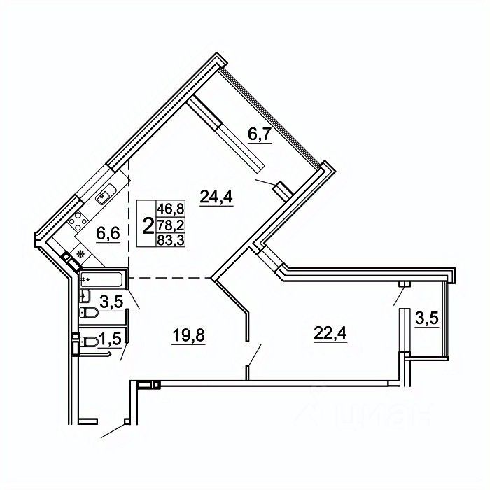 Общая площадь83,3 м²