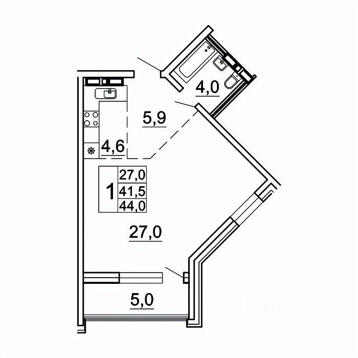 Общая площадь44 м²