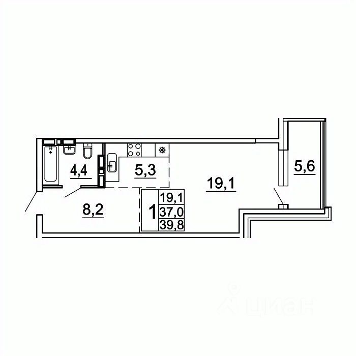 Общая площадь39,8 м²