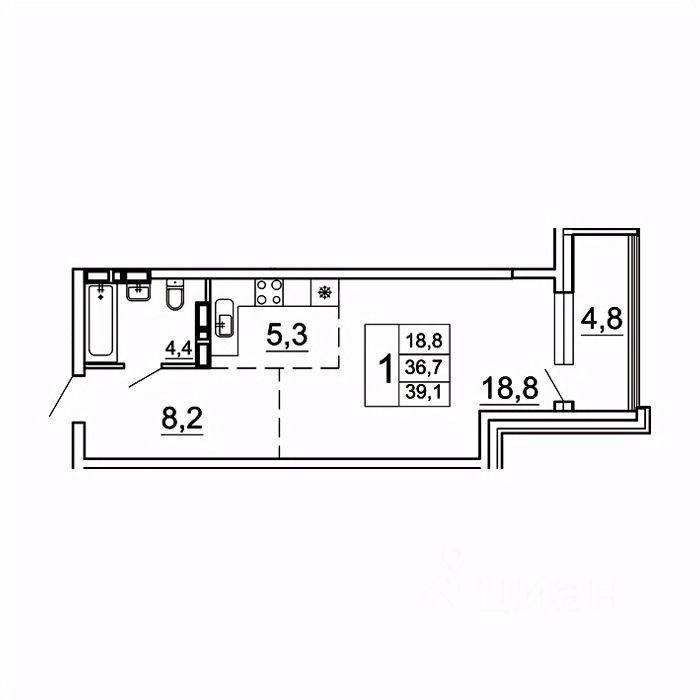 Продается 1-комн. квартира, 39,1 м²