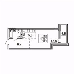 Общая площадь39,1 м²